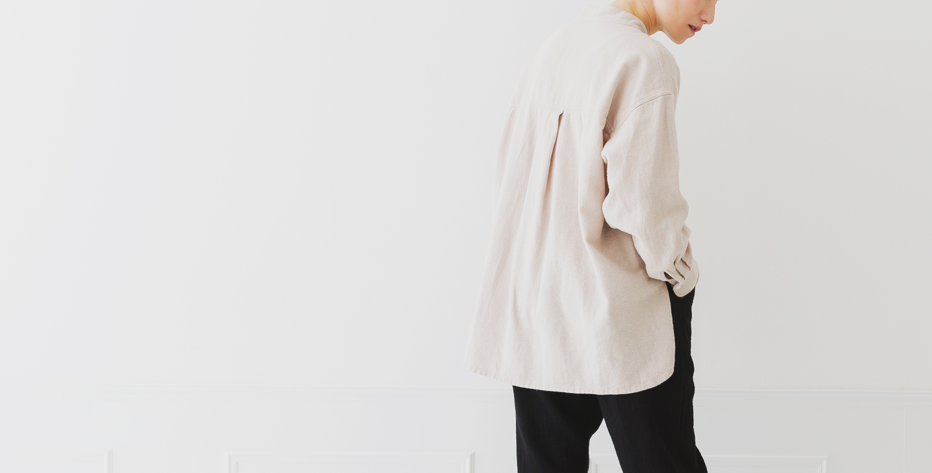 そこで、リネンとコットンを合わせた冬コーディネートをご提案。空気を含みやすく体温で暖まった空気が逃げない保温性の高いリネンの下に薄手のコットンを重ね着していただくと、オールシーズン、リネン×コットンコーデを楽しんでいただけます。